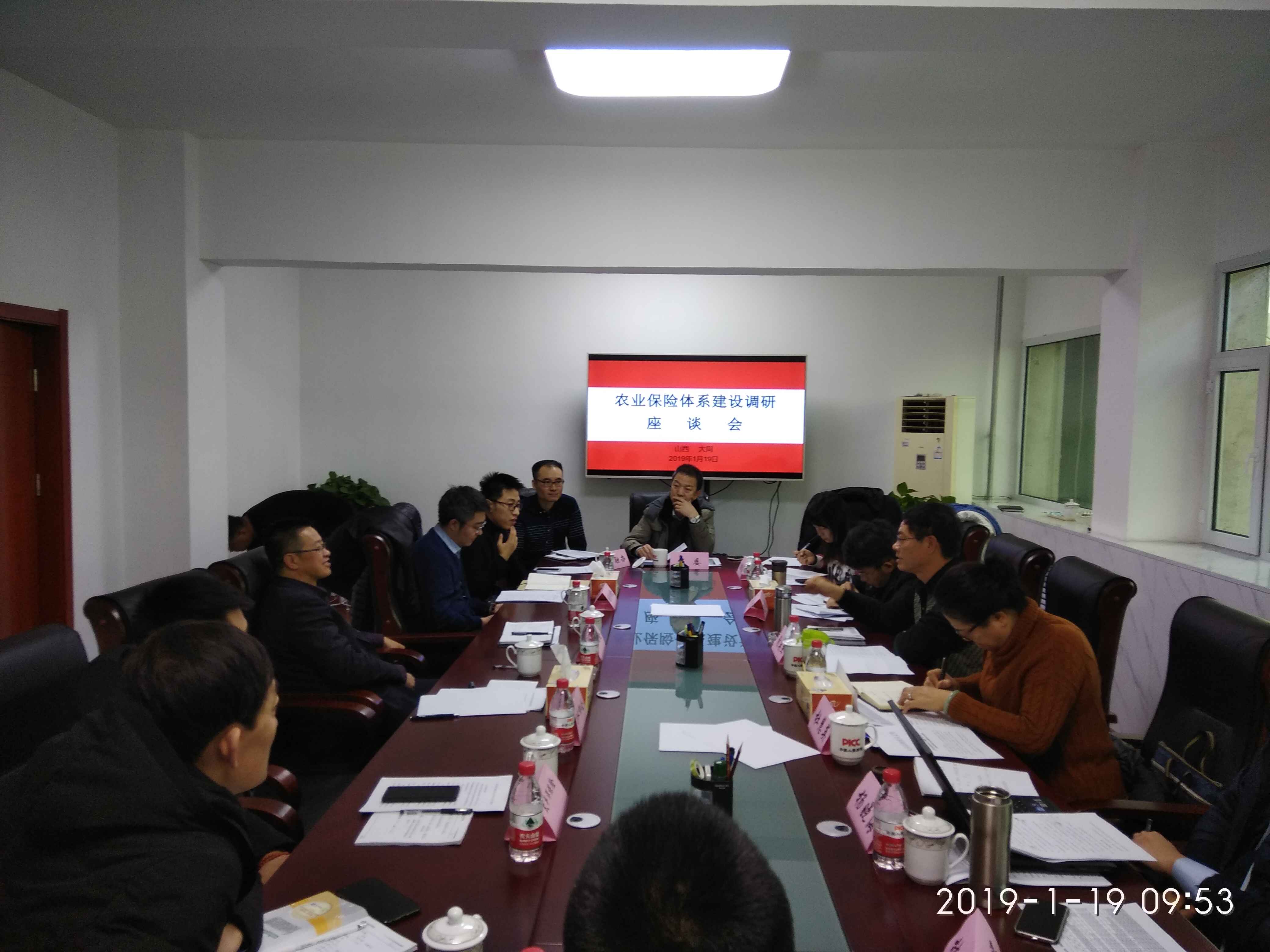2019年元月19—20日由省林业厅林权中心中任谢英杰一行四人组成的省委农业保险体系建设调研组到我市开展调研。在同期间,召集大同市农委、财政局、金融办、林业局、人保大同分公司、国寿财险大同中支公司、太平洋财险大同中支公司、中煤大同中支公司等单位领导在人保大同分公司四楼会议室召开大同市农业保险体系建设调研座谈会,会上谢主任传达省委此次调研农业保险体系建设工作要求,重点了解开展农业保险组织架构、财政资金补贴流程以及当前农业保险发展中存在的问题,各相关单位进行了汇报,并深入阳高、大同县区进行实地调研听取县区有关部门及养殖大户汇报。协会财险部陈建勋参与此次调研,并应调研组要求对有关数据及资料进行计算整理。