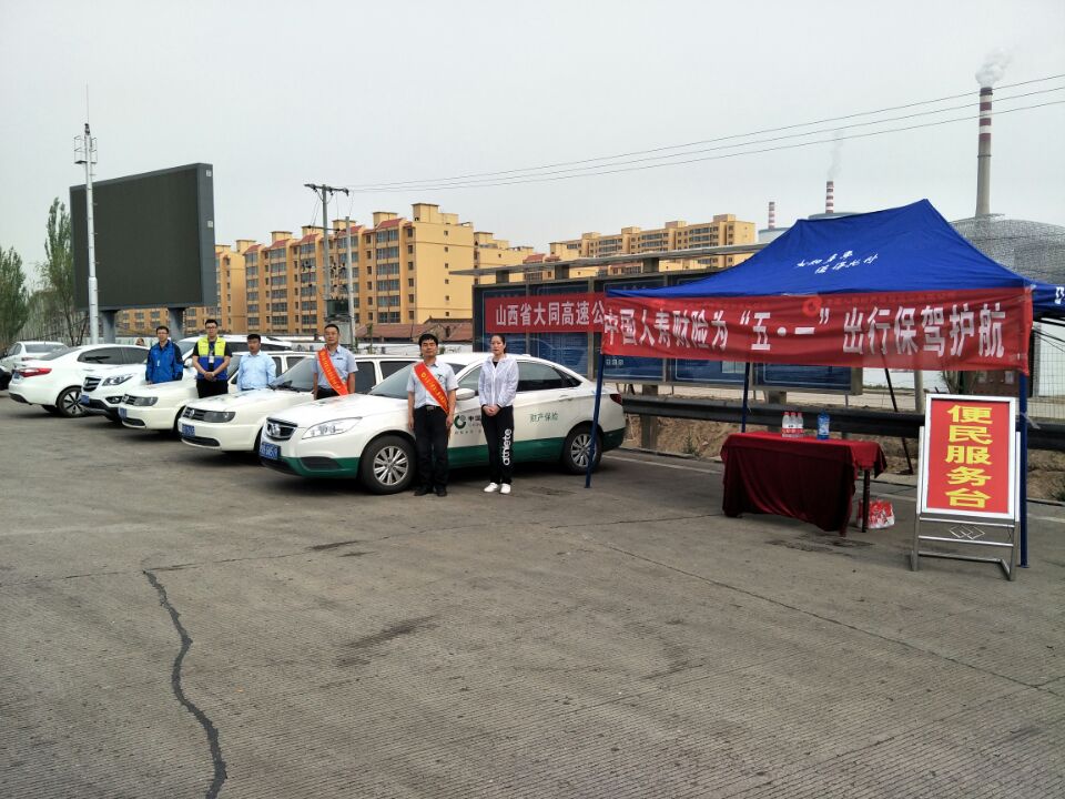 为保障“五一”(5月1日至5月4日)小长假期间我市主要高速公路出行顺畅, 对小额财损道路交通事故及时处理,提升保险服务水平,大同市保险行业协会组织全市24家财产险公司与山西省高速公路二支队一大队民警在大同市西河河高速公路出口设立道路交通事故快赔服务站实施快处快赔服务。