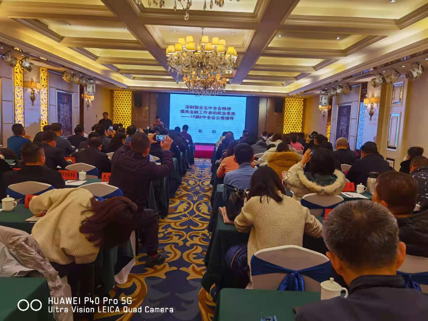 大同市委党校韩府教授以《深刻领会五中全会精神 提高金融工作者政治素质》为题,给两个协会会员单位的主要负责人(分管党务工作领导),以及两个协会工作人员等共计百余人,作了党的十九届五中全会公报辅导。