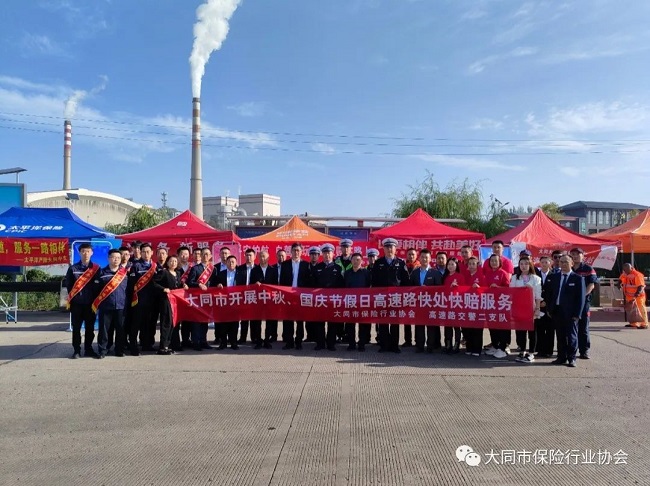 为保障“中秋、国庆”假日期间大同周边高速公路出行顺畅,助力2023年“金融消费者权益保护教育宣传月”活动,在国家金融监督管理总局大同监管分局的指导下,大同市保险行业协会联合高速交警二支队一大队、七大队、组织辖内24家财产保险公司和广汽丰田、一汽红旗4S店,在假日期间为广大出行车主提供大同周边高速公路交通事故快处快赔服务工作。在大同市西河河高速公路出口、大同市浑源高速公路西口设立道路交通事故快处快赔服务站点, 对小额财损道路交通事故实施快处快赔服务工作。