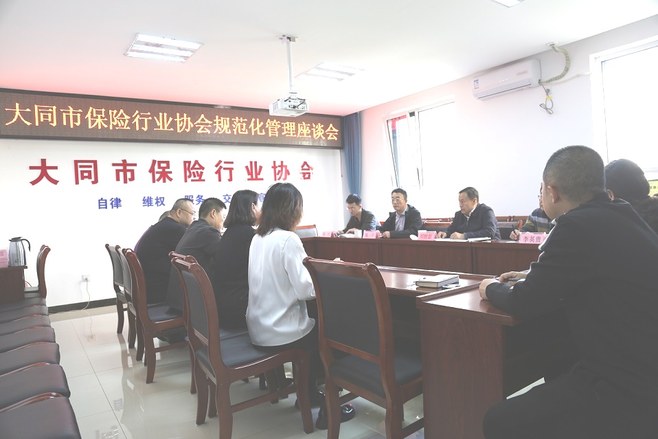 近日,大同金融监管分局副局长刘树新率保监科、消保科主要负责人莅临大同市保险行业协会,就保险社团规范化管理进行座谈。