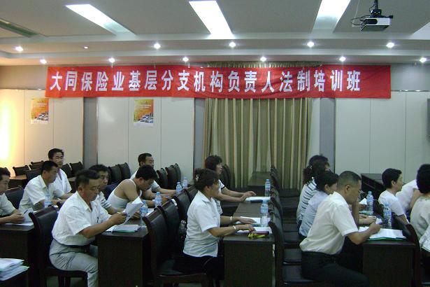 为了提高我市保险业基层分支机构负责人的法律和诚信经营的意识,进一步贯彻落实新《保险法》的精神,根据山西保监局下发的《山西保险业基层分支机构负责人法制培训教育五年规划》,行业协会于2009年8月14日至16日在国寿大同分公司五楼礼堂,举办了我市保险业基层分支机构负责人法制培训班,对来自国寿、人保、华安的26名基层分支机构负责人及协会的6名工作人员,进行了有针对性的法制培训。