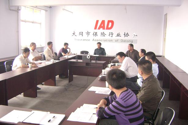 2009年8月25日上午9点,在大同市保险行业协会四楼会议室,协会组织召开了寿险专业委员会第三次会议,参会的人员有协会高铁强会长、孙志斌副会长、王者成秘书长及各寿险公司总经理共13人出席本次会议,会议由高铁强会长主持。