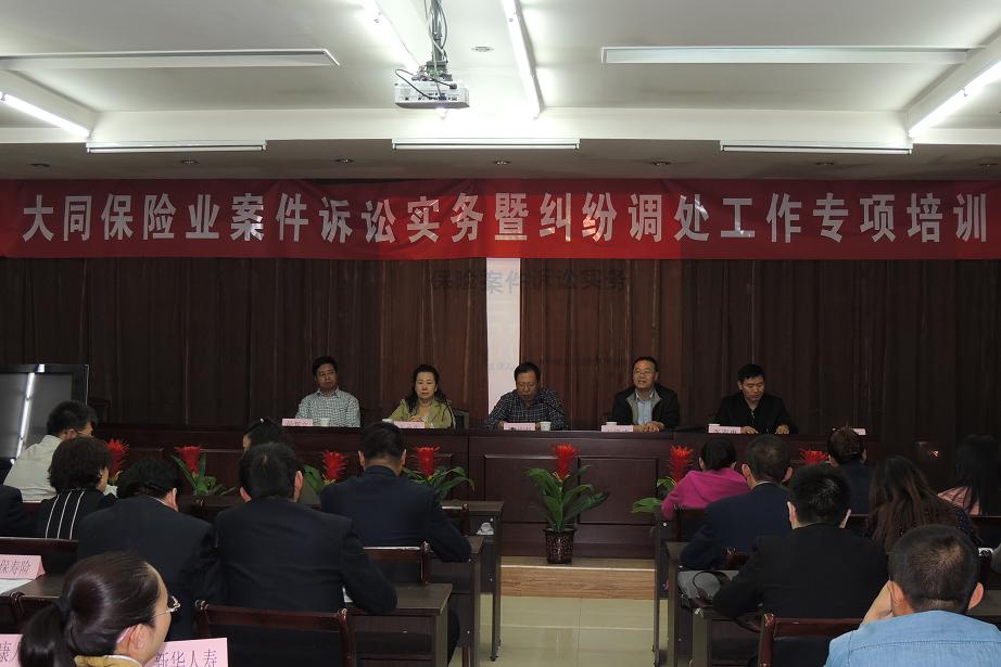 9月29日,山西省保险行业协会大同办事处举办了“大同保险业案件诉讼实务暨纠纷调处工作专项培训”,全市28家保险公司的理赔、客服、法务部门经理以及大同市保险纠纷人民调解委员会聘请的人民调解员,共计60人参加了此次培训。大同市中级人民法院政治部主任王永生、民事庭庭长侯慧文、大同市司法局基层处处长丁锁成、山西省保险行业协会大同办事处主任郭促参加了此次专题培训。