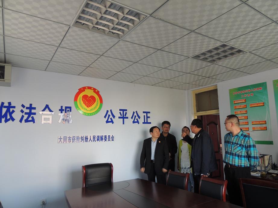 4月29日,山西省医疗纠纷人民调解委员会主任韩学军在山西省保险行业协会大同办事处进行工作交流。大同办事处主任郭促介绍了开展保险纠纷人民调解工作情况,韩学军主任介绍了省医调委开展人民调解的成功经验。韩主任一行还参观了办事处人民调解室等办公场所。