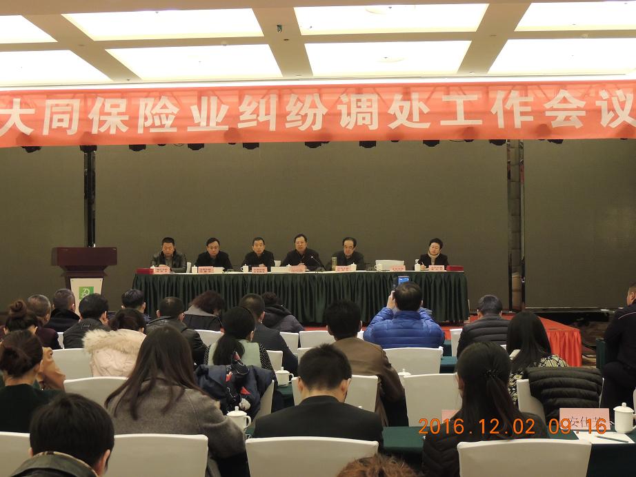 12月2日上午,山西省保险行业协会大同办事处、大同市中级人民法院、大同市司法局在贵宾楼假日酒店联合召开了大同市保险纠纷调处工作会议。大同市中级人民法院王发副院长,民一庭马剑峰副庭长,马祖荡、蔚志忠法官,大同市司法局徐武才副局长,大同市城区人民法院郑副院长,大同日报社昝银琴主任、各市级保险公司分管纠纷调处工作的副总经理或部门负责人以及大同市保调委全体调解员近百人参加了会议。会议由山西省保险行业协会大同办事处主任郭促主持。