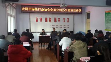 2017年1月4日,大同市保险行业协会召开了会员公司办公室主任会议,全市36家会员公司的办公室主任参会,大同市保险行业协会秘书长郭促主持会议。