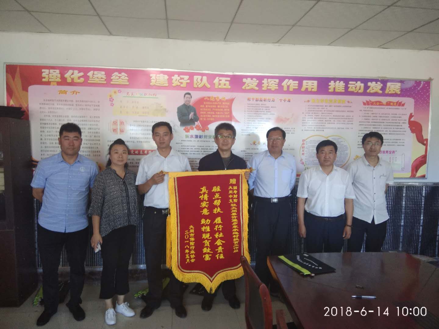 2018年6月7日,大同市保险行业协会秘书长郭促及综合办公室主任张颖、财产险部主任陈建勋与国寿大同中心支公司副总经理常永宏一道前往大同县许堡乡东水地村,慰问国寿财险大同中支公司驻村扶贫工作组梁海龙、肖风辉、李辉亮、赵振家等四名同志,了解工作组驻村扶贫工作进展情况,宣导党中央国务院市委市政府以及保险监管部门精准扶贫,脱贫攻坚重要指示。国寿财险大同中支公司驻村工作组组长梁海龙介绍两年来驻村扶贫工作情况。郭秘书长向驻村工作组赠送“驻点帮扶履行社会责任,真情实意助推脱贫致富”锦旗和慰问品,勉励工作组同志要充分展示保险业扶贫攻坚社会责任和担当,希望各位驻村扶贫工作组同志与村民一道齐心协力、艰苦奋斗为许堡乡东水地村脱贫致富做贡献。慰问组还到国寿财险大同县支公司了解公司业务发展。