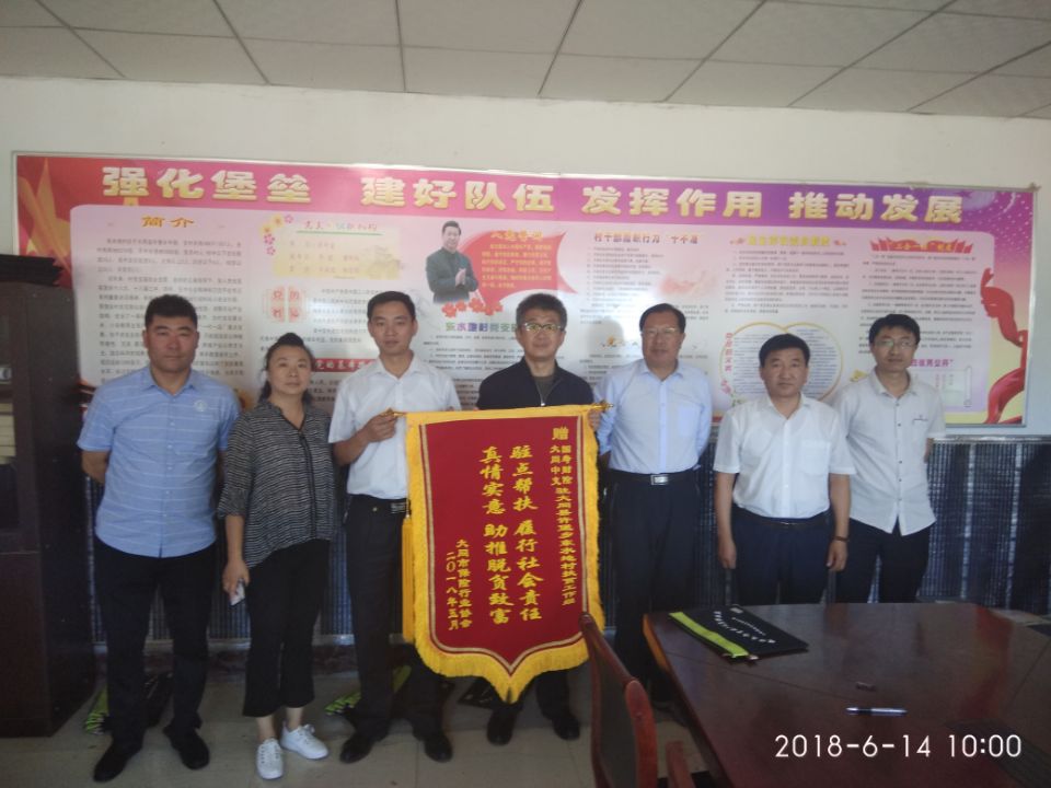 2018年6月,大同市保险行业协会秘书长郭促带队组成了驻村扶贫工作队慰问小组,前往扶贫工作队驻地看望和慰问扶贫工作队队员。慰问小组将锦旗和慰问品送到驻村扶贫工作队的驻地,了解“特色农业保险”、“农村大病医疗保险”、“绿色金融”等保险扶贫手段的实际效果,听取了驻村扶贫工作队对于下一步扶贫工作的想法和计划,询问了扶贫工作队面临的困难,宣导了党中央国务院、市委、市政府以及保险监管部门精准扶贫,脱贫攻坚重要指示,勉励工作组同志要充分展示保险业扶贫攻坚的社会责任和担当,希望各位同仁与当地村民一道同心同德,守望相助,艰苦奋斗,为贫困地区的脱贫致富和可持续发展做出应有的贡献。慰问结束后,还将了解到相关情况向相关部门进行了及时反馈。