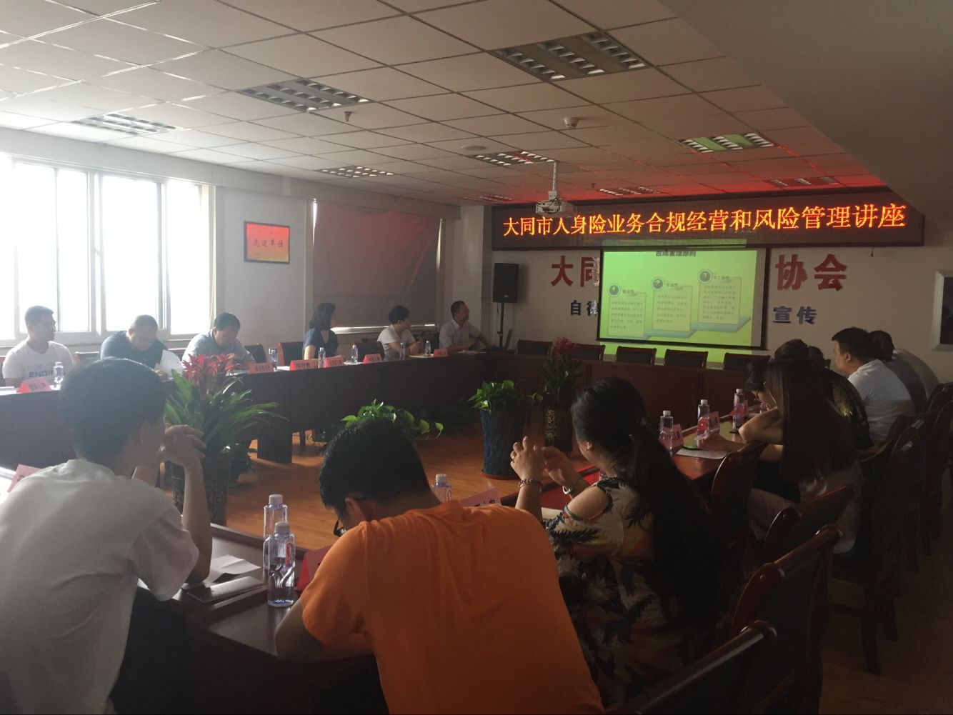2018年7月20日上午9点,大同市保险行业协会召开了人身险业务合规经营和风险管理讲座。大同市保险行业协会秘书长、人身险工作部、各人身险公司合规部门负责人及相关岗位工作人员共27人参加了本次讲座。会议由协会人身险部主任何鑫主持,聘请太平洋人寿保险股份有限公司大同中心支公司合规和风险管理专员牛守贵老师为大家进行合规经营和风险管理知识讲座。